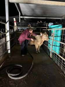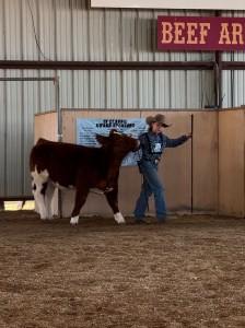 Something that I had never had to do before was have the steer classified for breed/division. A committee of six cattlemen walk around your steer and determine if you entered your animal in the correct class. This was by far the biggest show that I had ever exhibited at and people from all over the United States were exhibiting. Cash placed second in his class in the British Market Steer division and advanced onto the champion class for the British Division. Patrick star was ninth in the Prospect Steer division.