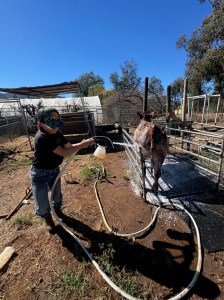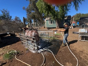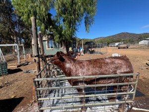 This month I’ve been washing and working my steer. I’ve been halter breaking my steer and he still jumps, but he’s been getting better and I work with him almost everyday. I’m getting him ready for a show in Bakersfield. I’ve washed him almost every week and he’s getting comfortable being in the stanchion. He’s been getting better everyday and I’ve been having a lot of fun with him.